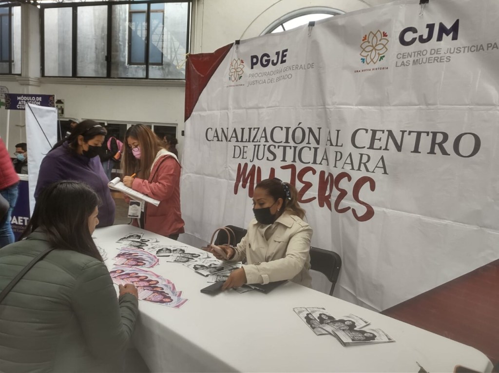 Con el objetivo de sensibilizar a la población sobre la importancia de erradicar la violencia contra las personas del sexo femenino, el Centro de Justicia para las Mujeres (CJM) de la Procuraduría General de Justicia del Estado (PGJE) acude a los municipios para invitar a la ciudadanía a conocer los servicios integrales especializados y gratuitos que brinda esta institución.