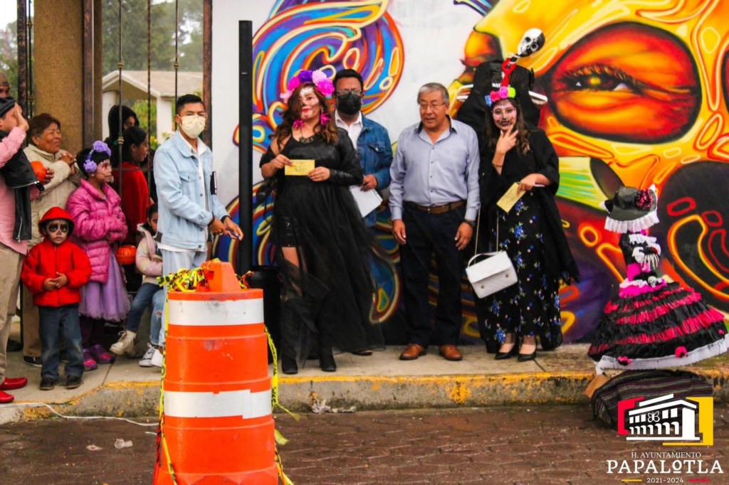 El H. Ayuntamiento de Papalotla de Xicohténcatl, que encabeza el Dr. Juan Octavio Rojas Cruz, llevó a cabo el concurso de disfraz tradicional de día de muertos en el panteón municipal.