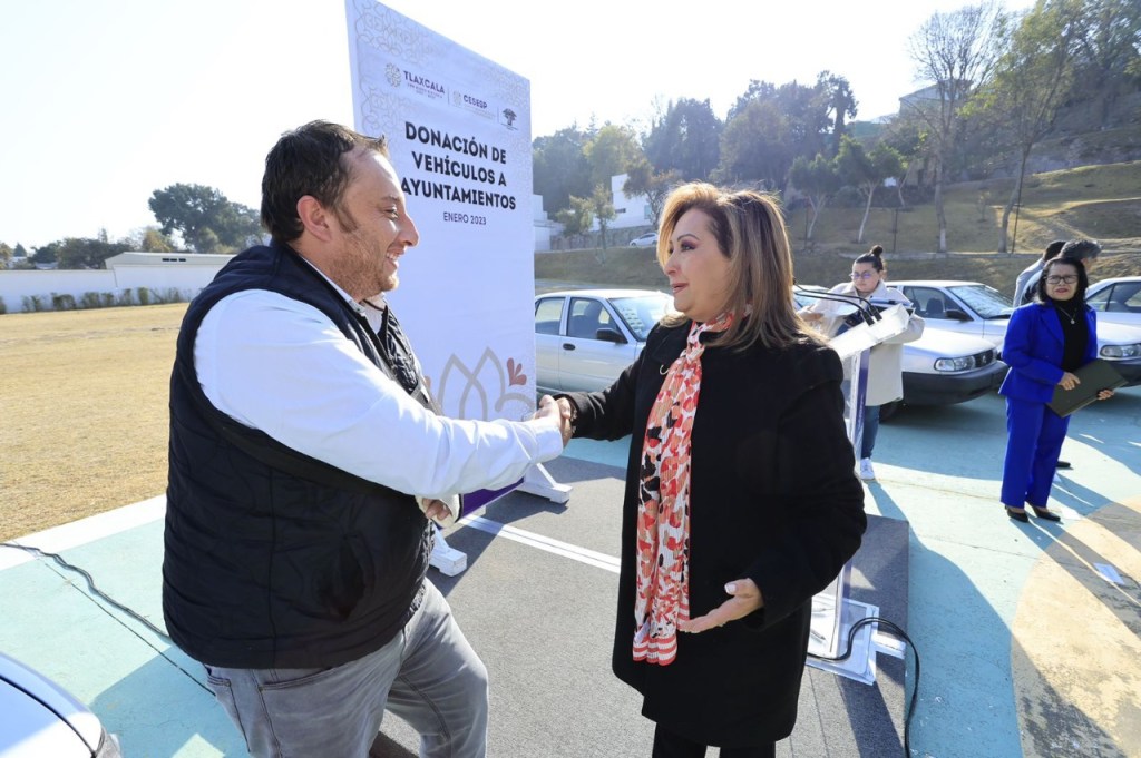 La gobernadora Lorena Cuéllar Cisneros y la titular del Órgano de Fiscalización Superior (OFS), María Isabel Maldonado Textle, donaron 12 vehículos utilizables a igual número de municipios para reforzar las acciones de seguridad y prevención del delito.
