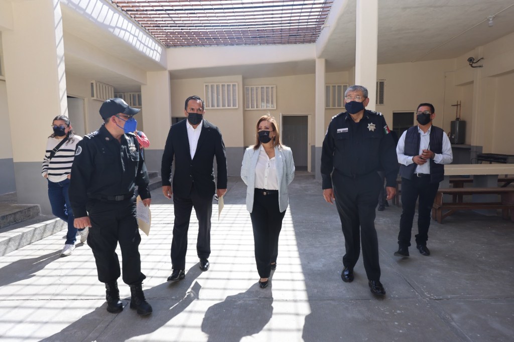 Asimismo, la mandataria estatal verificó la edificación de la barda perimetral que colinda con la Casa de Justicia de Guridi y Alcocer, y que busca brindar seguridad al Centro en mención, así como a las actividades diarias de la policía procesal.
