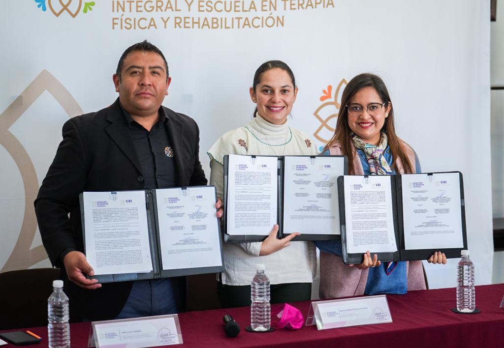 La Secretaría de Bienestar del Estado de Tlaxcala y el Centro de Rehabilitación Integral y Escuela de Terapia Física y Rehabilitación firmaron un convenio de colaboración con el propósito de establecer las bases y mecanismos para que los alumnos que cursan la Licenciatura en Terapia Física y Rehabilitación, realicen sus prácticas profesionales en la Secretaría de Bienestar, para impulsar su desarrollo profesional y amplíen la atención a personas con discapacidad.