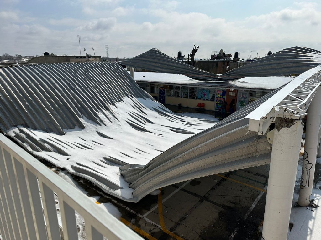 La Secretaría de Educación Pública del Estado y la Unidad de Servicios Educativos de Tlaxcala (SEPE–USET) realizó una inspección–evaluación de daños en la escuela primaria rural “Emiliano Zapata” de la comunidad de San Marcos Guaquilpan, municipio de Calpulalpan, derivado de la granizada atípica del pasado domingo 9 de abril que provocó el colapso de la techumbre.