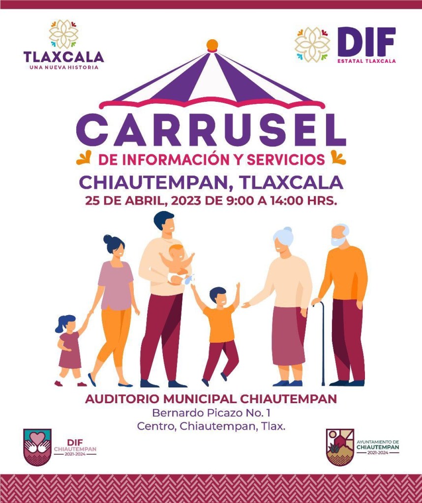 El Ayuntamiento de Chiautempan en coordinación con el Sistema Estatal DIF (SEDIF) anuncia sobre la instalación del «Carrusel de Información y Servicios» el próximo martes 25 de abril, en el municipio sarapero.