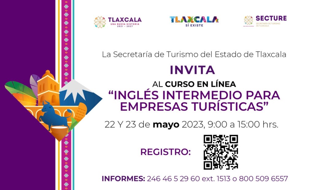 Con la finalidad de elevar los estándares de calidad de los servicios, la Secretaría de Turismo del Estado (Secture) invita a embajadores turísticos formados por la dependencia y a personal de seguridad pública de la capital y de la entidad, al curso en línea “Inglés Intermedio para Empresas Turísticas” que se impartirá de manera gratuita los días 22 y 23 de mayo de 2023.