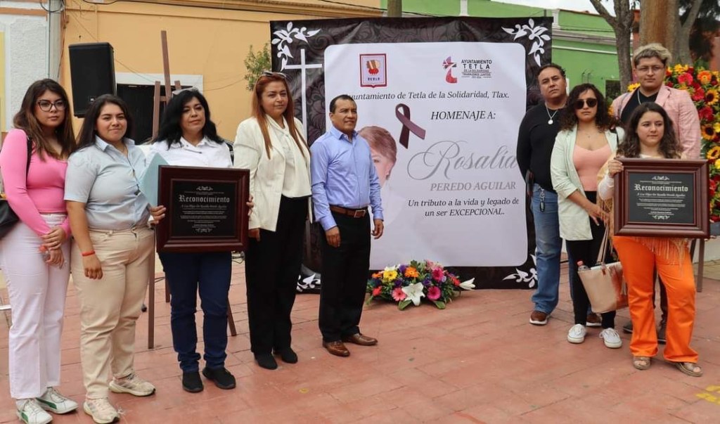 La mañana de este miércoles en Plaza de la Américas, el presidente municipal de Tetla de la Solidaridad, Andrés Ramírez Galicia, la presidenta honorifica del Sistema Municipal para el Desarrollo Integral de la Familia (SMDIF), Catalina Salomé Vargas Pérez, rindieron un emotivo homenaje a la activista, política y luchadora, Rosalía Peredo Aguilar.