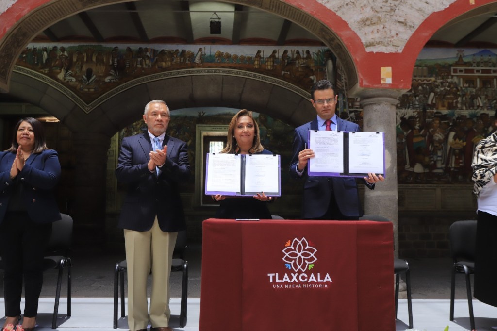La titular del Ejecutivo local, Lorena Cuéllar Cisneros y el Consejo de Notarios del estado signaron convenio de colaboración para que las y los tlaxcaltecas accedan a diversos programas de escrituración, con la finalidad de contribuir a la previsión, certeza y seguridad jurídica en materia de sucesiones y patrimonio inmobiliario, así como facilitar y promover la donación de órganos sin fines de lucro.