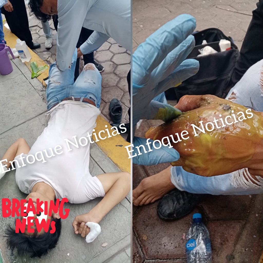 Durante la procesión de la imagen de Santa Elena, en la comunidad de San Cosme, municipio de San Pablo del Monte, un joven de 17 años sufrió quemaduras en su mano al manipular los cohetes durante la celebración.