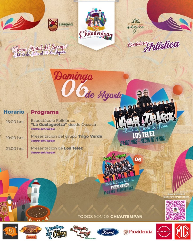 Este domingo se llevará a cabo el gran cierre de la Feria de Chiautempan 2023 «Tierra Natal del Sarape» con la presentación estelar del grupo Los Télez en el Recinto Ferial.