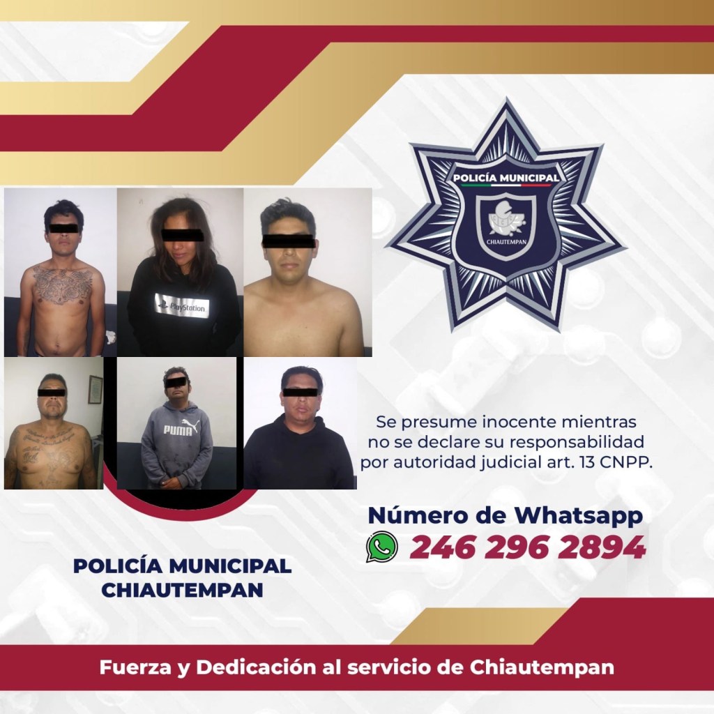 Elementos de la Dirección de Seguridad Pública Municipal, Vialidad y Protección Civil de Chiautempan, detuvieron a una banda de seis personas por robo de vehículo.