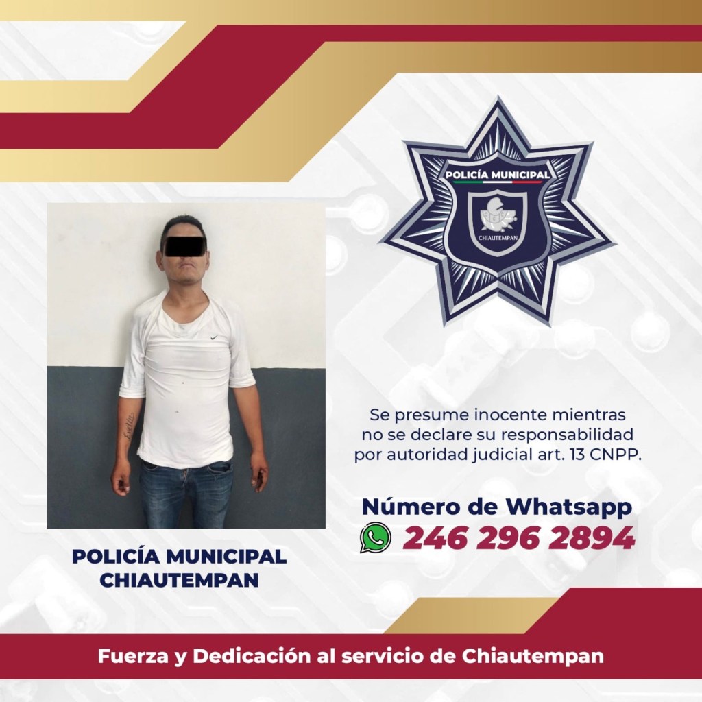 Al contar con los elementos probatorios necesarios, el hombre, posterior a una revisión prehospitalaria fue trasladado a la Dirección de Seguridad Pública Municipal, Vialidad y Protección Civil de Chiautempan, para iniciar con la puesta a disposición ante el Ministerio Público correspondiente.