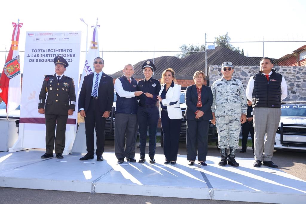La gobernadora de Tlaxcala, Lorena Cuéllar Cisneros entregó este miércoles nueve patrullas a personal de la Secretaría de Seguridad Ciudadana (SSC) con una inversión de 13 millones 265 mil 180 pesos, para fortalecer la estrategia de seguridad pública y mejorar la atención que se brinda a la población.