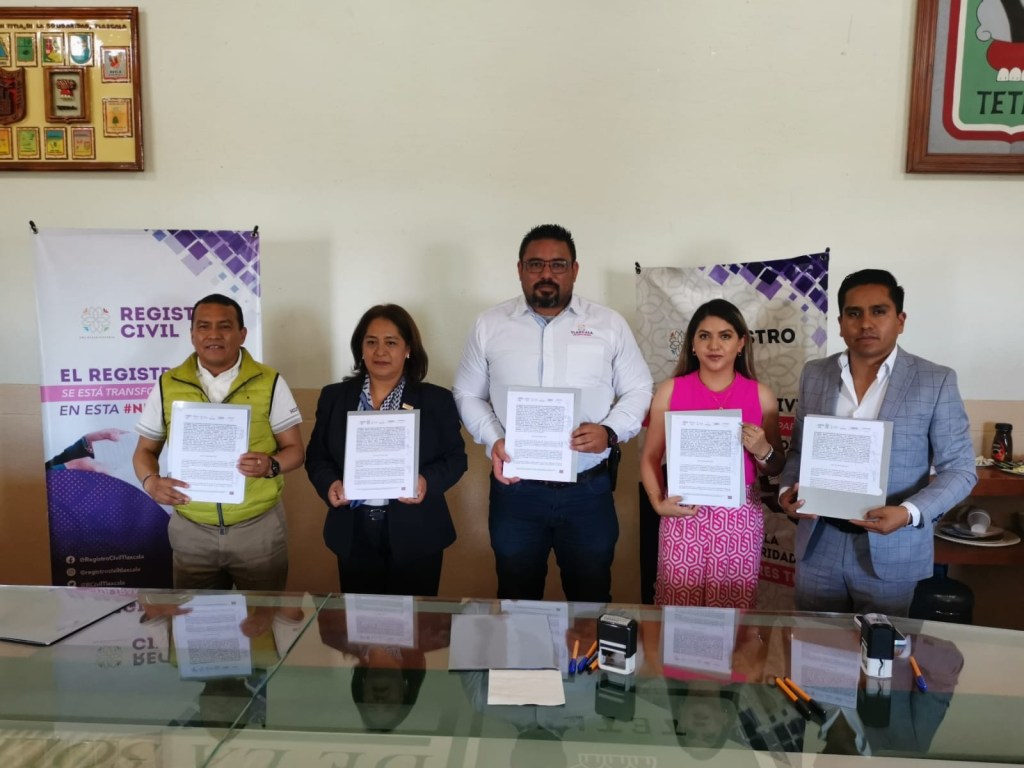 El alcalde de Tetla de la Solidaridad, Andrés Ramírez Galicia, y la Coordinación Estatal del Registro Civil y la Secretaría Ejecutiva del Sistema Estatal de Protección de Niñas, Niños y Adolescentes de Tlaxcala, signaron convenio de colaboración, esto con el objetivo de dar a conocer la campaña publicitaria de prevención en materia de registros extemporáneos.