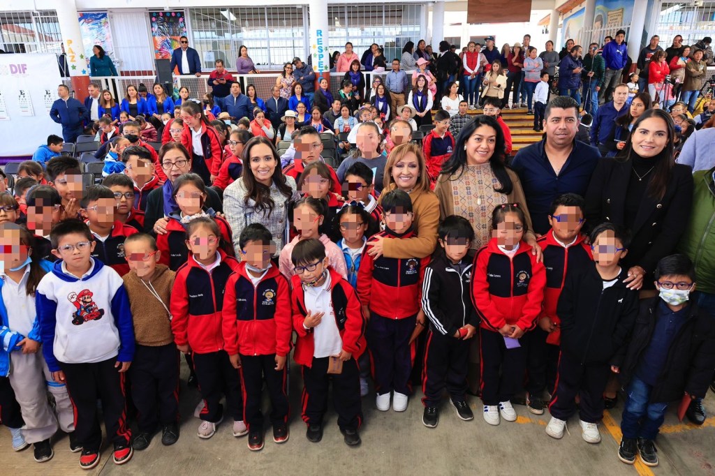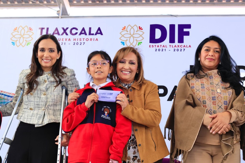 La gobernadora Lorena Cuéllar Cisneros entregó este miércoles en la primaria “Ignacio Manuel Altamirano” del municipio de San José Teacalco, lentes del programa Unidad de Atención Visual “Contigo para Ver, Aprender y Avanzar” del Sistema Estatal para el Desarrollo Integral de la Familia (Sedif).