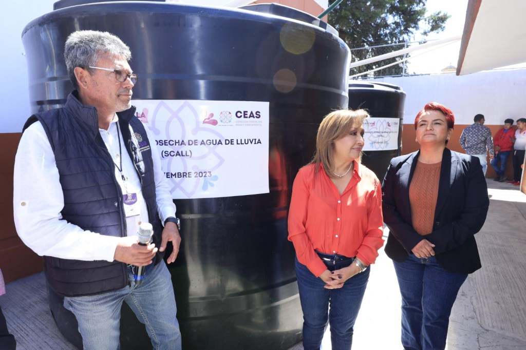 La gobernadora Lorena Cuéllar Cisneros dotó de Sistemas de Captación de Agua Pluvial, del programa “Cosecha de lluvia” que ejecuta la Comisión Estatal de Agua y Saneamiento (CEAS), a las comunidades de San Isidro Buensuceso y San Pedro en el municipio de San Pablo del Monte, cuya inversión estatal supera 317 mil pesos y que beneficiará a 15 mil 160 habitantes.