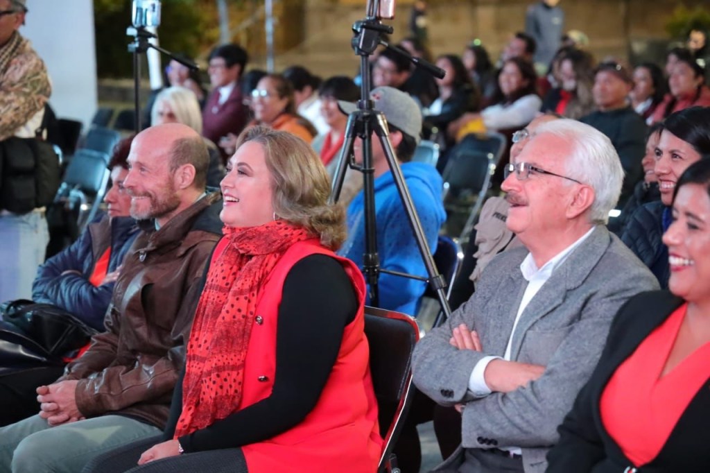 En el parque Hidalgo, la actriz y comediante Bettina Salazar mejor conocida por interpretar a “Olga Sana” habló sobre su lucha contra el cáncer a través de una forma peculiar, a fin de concientizar, informar y compartir su experiencia de vida en beneficio de las mujeres chiautempeses.