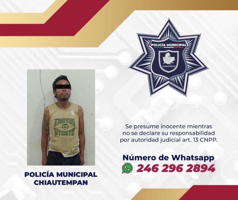 Al tornarse agresivo y con los objetos localizados, los elementos de la Policía de Chiautempan detuvieron al masculino al tratarse de la probable comisión del delito.