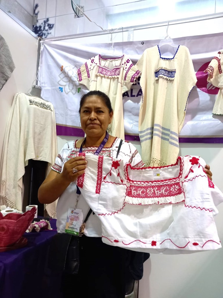 “Decidí innovar, poner mis diseños en distintas prendas que están de moda y eso es lo que nos ha permitido tener mayores ventas, además de que les explicó que cada bordado tiene un significado y las personas se quedan maravilladas sobre todo los visitantes de otros estados y turistas”, contó.