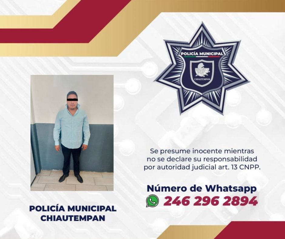 Elementos de la Dirección de Seguridad Pública Municipal, Vialidad y Protección Civil de Chiautempan, detuvieron a un masculino por su probable responsabilidad en un hecho de tránsito que resultó en el fallecimiento de un menor de edad de identidad reservada.