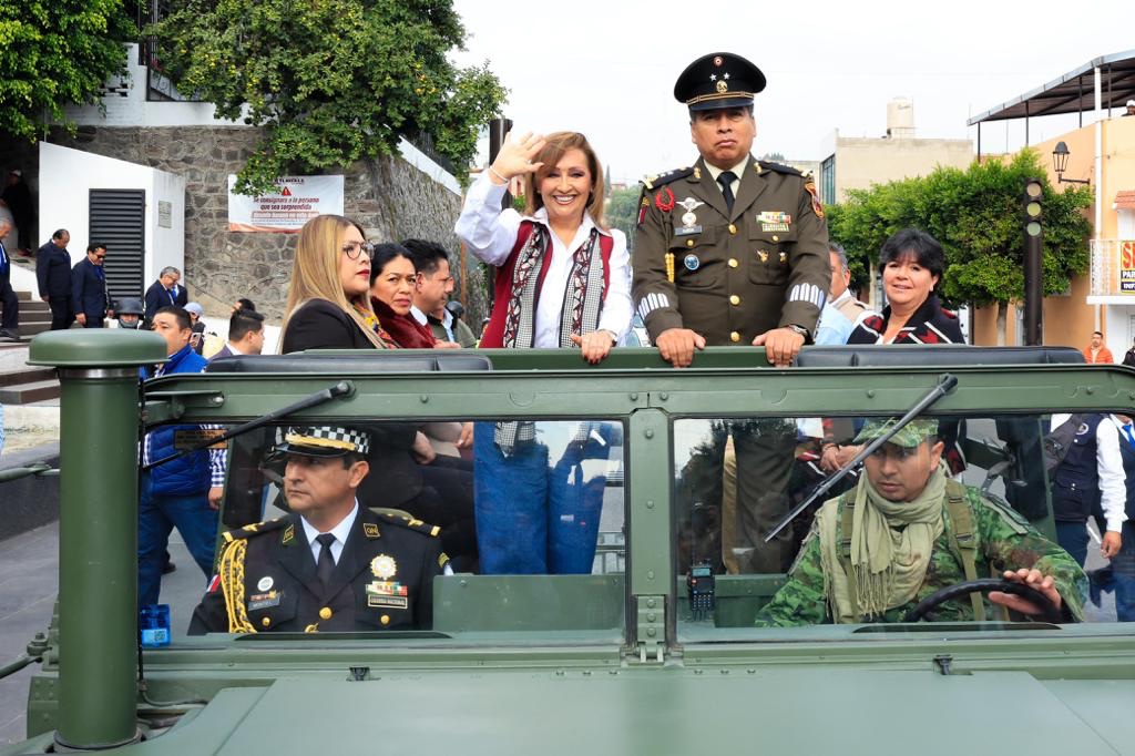 Tras el acto protocolario, con gran respeto la titular del Ejecutivo local, acompañada de los titulares de los poderes Judicial y Legislativo, así como otras autoridades, dio inicio al desfile, al caminar de las escalinatas de los héroes al pódium ubicado frente a la presidencia municipal de Tlaxcala.