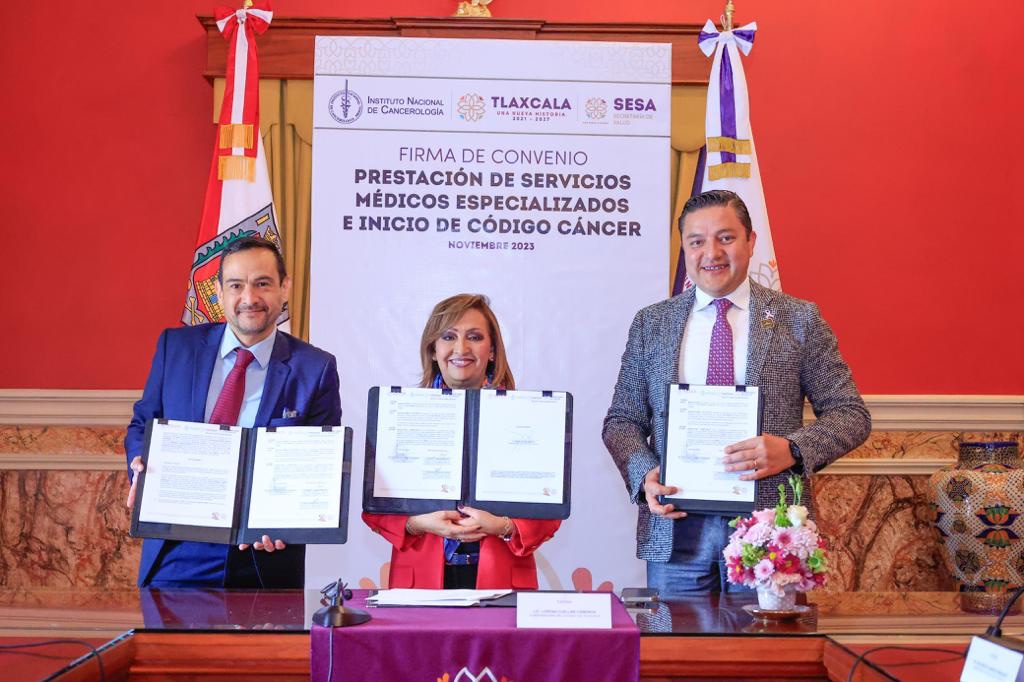 Con la finalidad de que las tlaxcaltecas que sean diagnosticadas con cáncer de mama tengan garantizado el acceso a los servicios especializados de salud, la gobernadora, Lorena Cuéllar Cisneros firmó un convenio de colaboración con el Instituto Nacional de Cancerología (Incan) de la Ciudad de México.