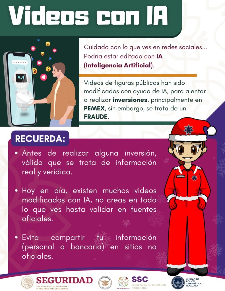 Finalmente, recomendó a la ciudadanía que si salen de vacaciones utilicen plataformas oficiales para realizar reservaciones; que tengan cuidado con ofertas “irresistibles” porque podría ser un fraude, además de solo comprar en sitios/plataformas oficiales; evitar ingresar datos de tarjetas bancarias en sitios no oficiales, y ser cuidadosos con llamadas de cargos no reconocidos.