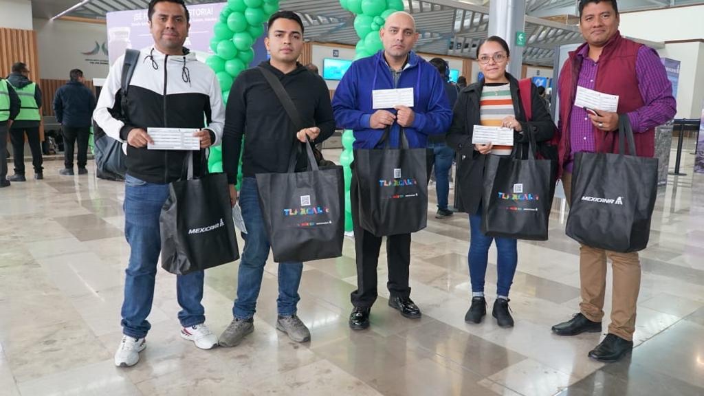 A los primeros pasajeros se les entregó un kit promocional integrado con giveaways de varias entidades, una frazada con la marca turística de Tlaxcala y un folleto que contiene información turística de cada uno de los 32 estados.
