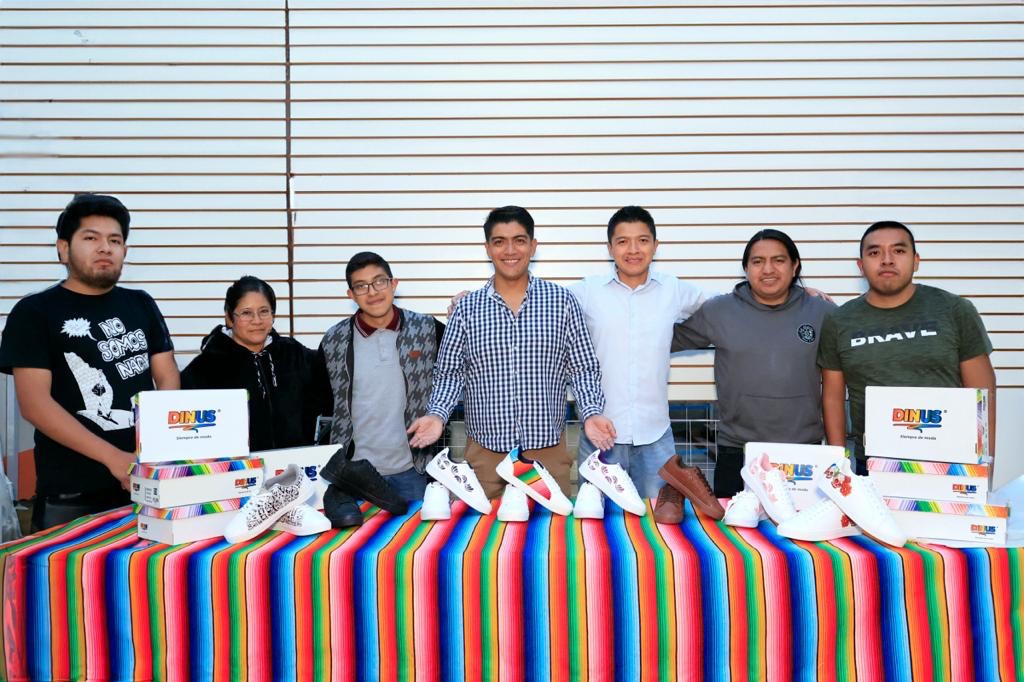 Nervioso, orgulloso y emocionado, Ricardo Hernández Xochitemol habló sobre su proyecto “Dinus Siempre de moda”, que es una microempresa que elabora tenis con diseños donde se resalta el arte de Tlaxcala, principalmente de su municipio de origen que es Contla de Juan Cuamatzi, pues su producto estrella es el calzado hecho con sarape.