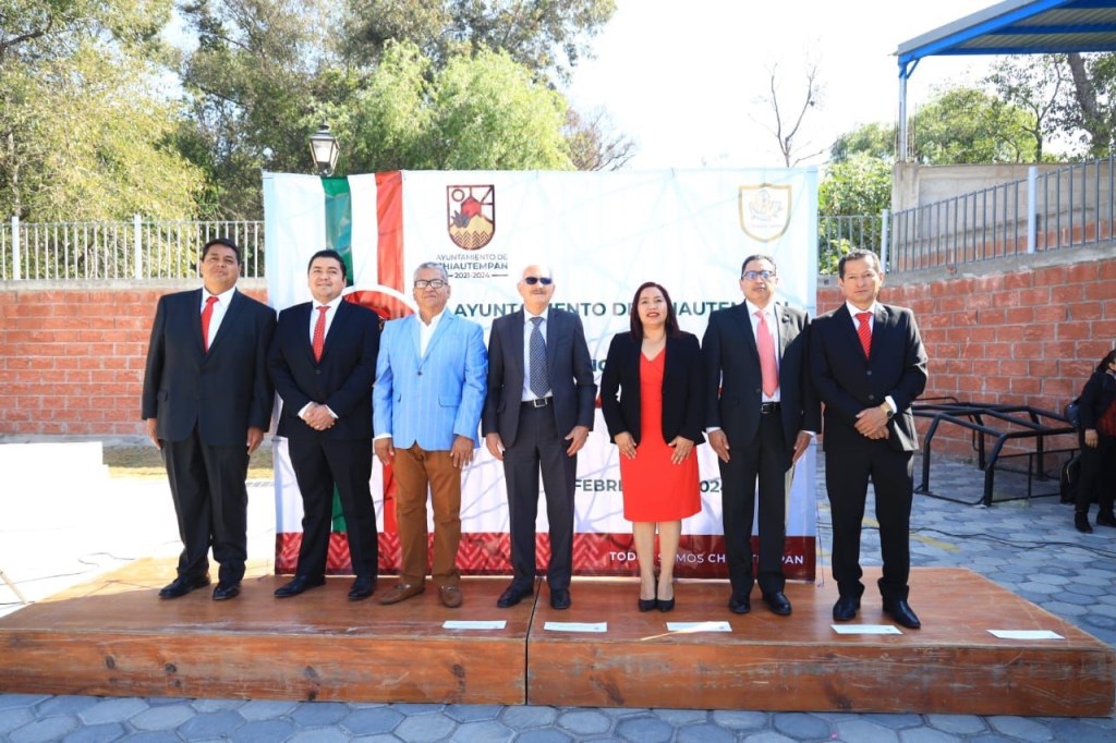 El Presidente Municipal Gustavo Jiménez Romero encabezó la ceremonia conmemorativa por el Día de La Bandera en el municipio de Chiautempan.