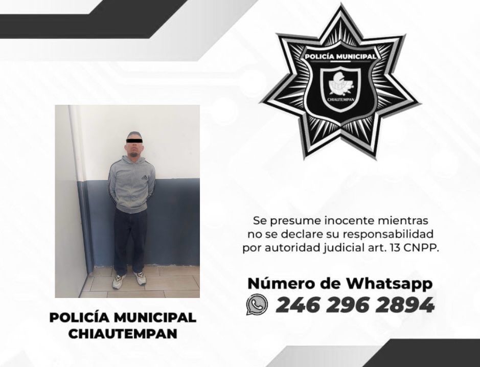 De conformidad con lo establecido en el Bando de Policía y Gobierno del Municipio de Chiautempan, elementos de la Dirección de Seguridad Pública Municipal, Vialidad y Protección Civil detuvieron a un sujeto por infringir el Artículo 14 Fracción VII y XIII del ordenamiento municipal.