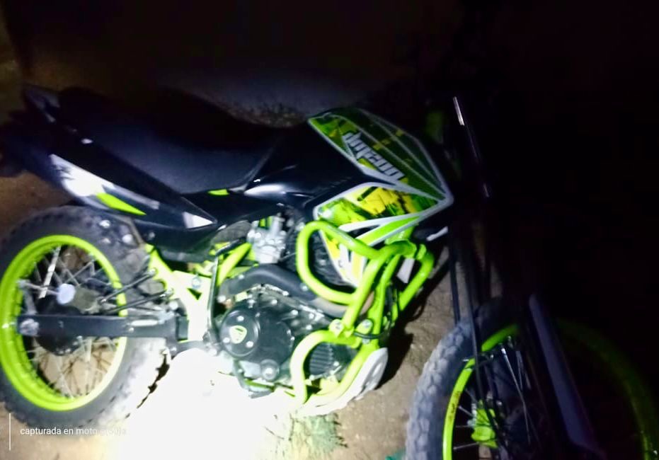 Al hacer una inspección, los elementos policiales notaron que la motocicleta tipo Cross de color verde con blanco y negro fue reportada como robada en la comunidad de Xaxala ante el Servicio de Emergencias 911.