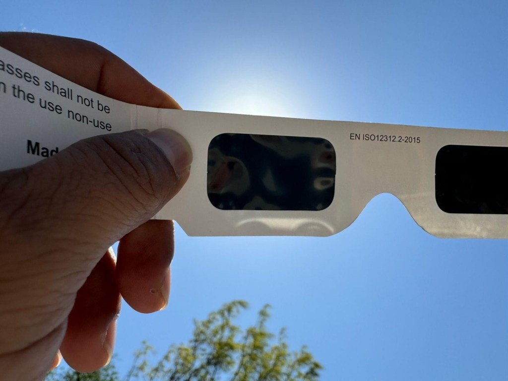 Protege tu vista con lentes certificados con la leyenda ISO 12312-2 o un filtro para soldar número 14 y elige un lugar seguro para verlo. ¡Disfruta este fascinante fenómeno astronómico con responsabilidad!