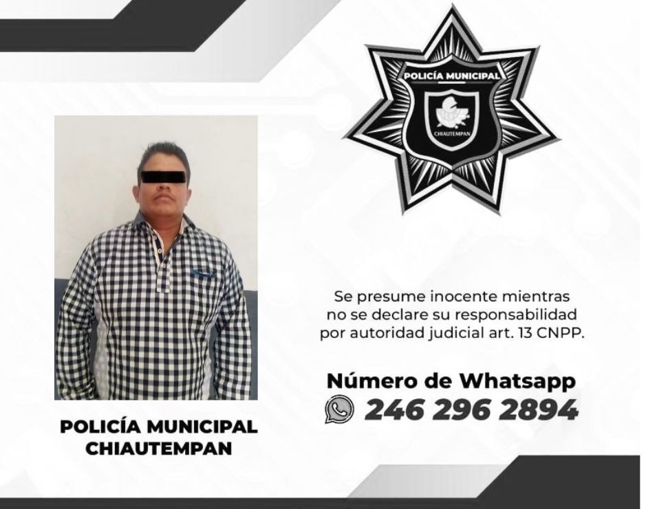 Al encontrarse en un intento de cohecho, los elementos policiales procedieron a la legal detención de quien se identificó como Jorge N., de 34 años de edad y originario de la Ciudad de México (CDMX) y que fue trasladado a las instalaciones de la Policía de Chiautempan, para los trámites correspondientes.