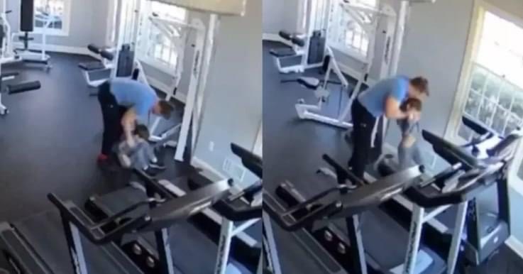 En el video que grabó la cámara de seguridad del gimnasio al que acudieron se puede ver al niño cayéndose varias veces y al padre presionándolo para seguir.