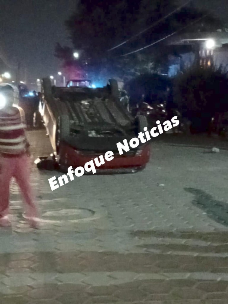 Pobladores detuvieron a los ocupantes de un vehículo marca KIA, misma unidad que fue volcada por un grupo de vecinos, al señalarlos de ser los supuestos responsables de estos actos.