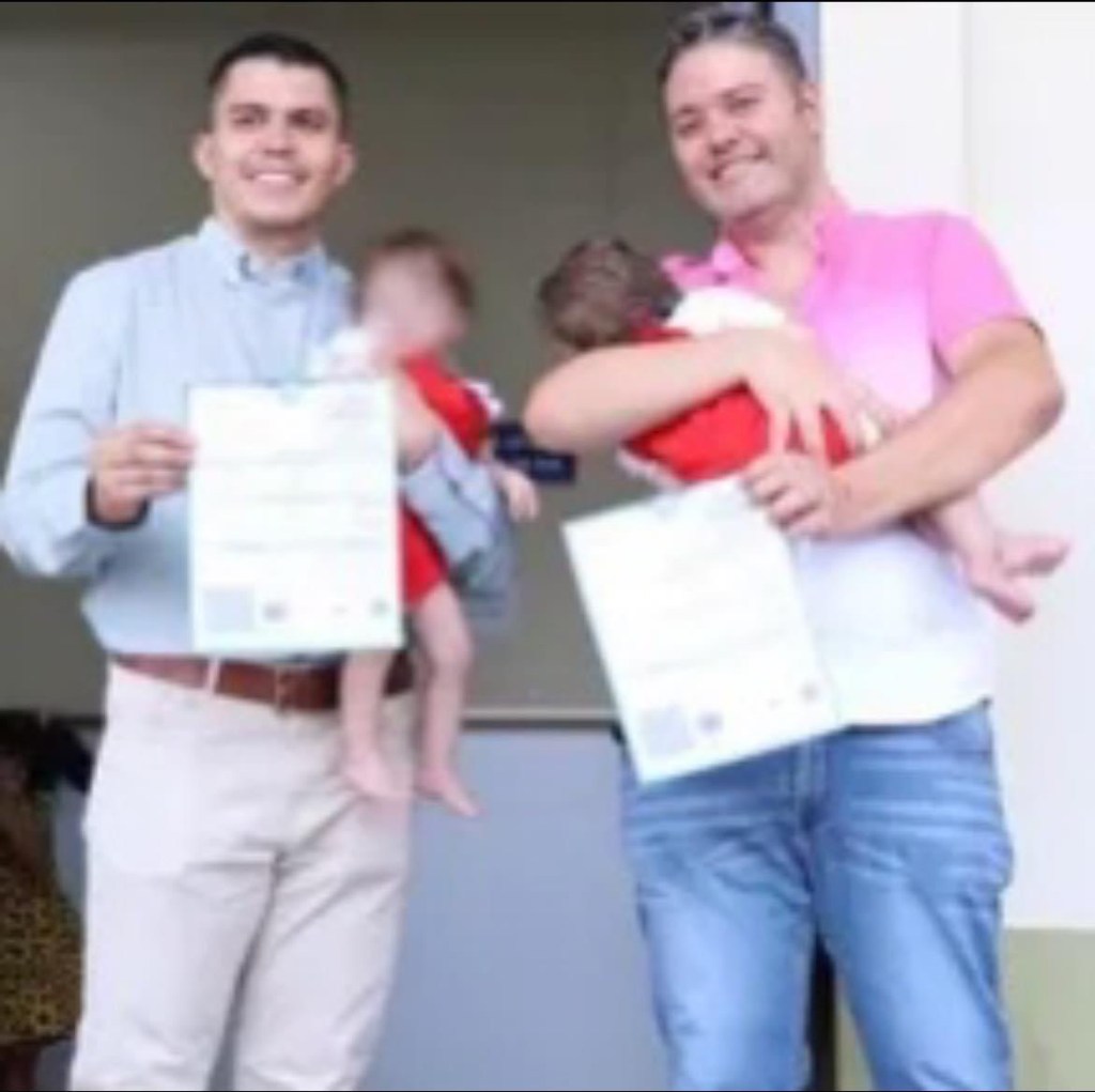 Víctor Muro y Román Palomar, una pareja de casados, son los padres de estos dos bebés de un año, quienes nacieron gracias a la fecundación in vitro en 2023. Y ahora, por primera vez en México, por ser el caso de una familia homoparental, se les emitió un acta de nacimiento a sus pequeños.