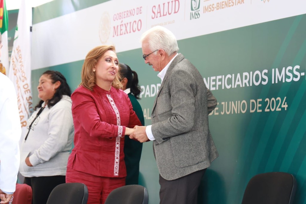 El Presidente Municipal Gustavo Jiménez Romero atestiguó la entrega de credenciales del padrón de beneficiarios IMSS-Bienestar Tlaxcala, por parte de la Gobernadora del Estado, Lorena Cuéllar Cisneros a personas del municipio de Chiautempan.