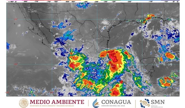 Se esperan lluvias puntuales intensas (de 75 a 150 milímetros [mm]) en Chiapas, Colima, Guerrero, Jalisco, Michoacán, Oaxaca, Puebla, San Luis Potosí, Tamaulipas y Veracruz; muy fuertes (de 50 a 75 mm) en Coahuila, Estado de México, Hidalgo, Morelos, Nayarit, Nuevo León y Querétaro; fuertes (de 25 a 50 mm) en Aguascalientes, Ciudad de México, Guanajuato, Sonora, Tabasco, Tlaxcala y Zacatecas; intervalos de chubascos (de 5 a 25 mm) en Campeche, Chihuahua, Durango, Quintana Roo, Sinaloa, Yucatán, así como lluvias aisladas (de 0.1 a 5 mm) en Baja California.