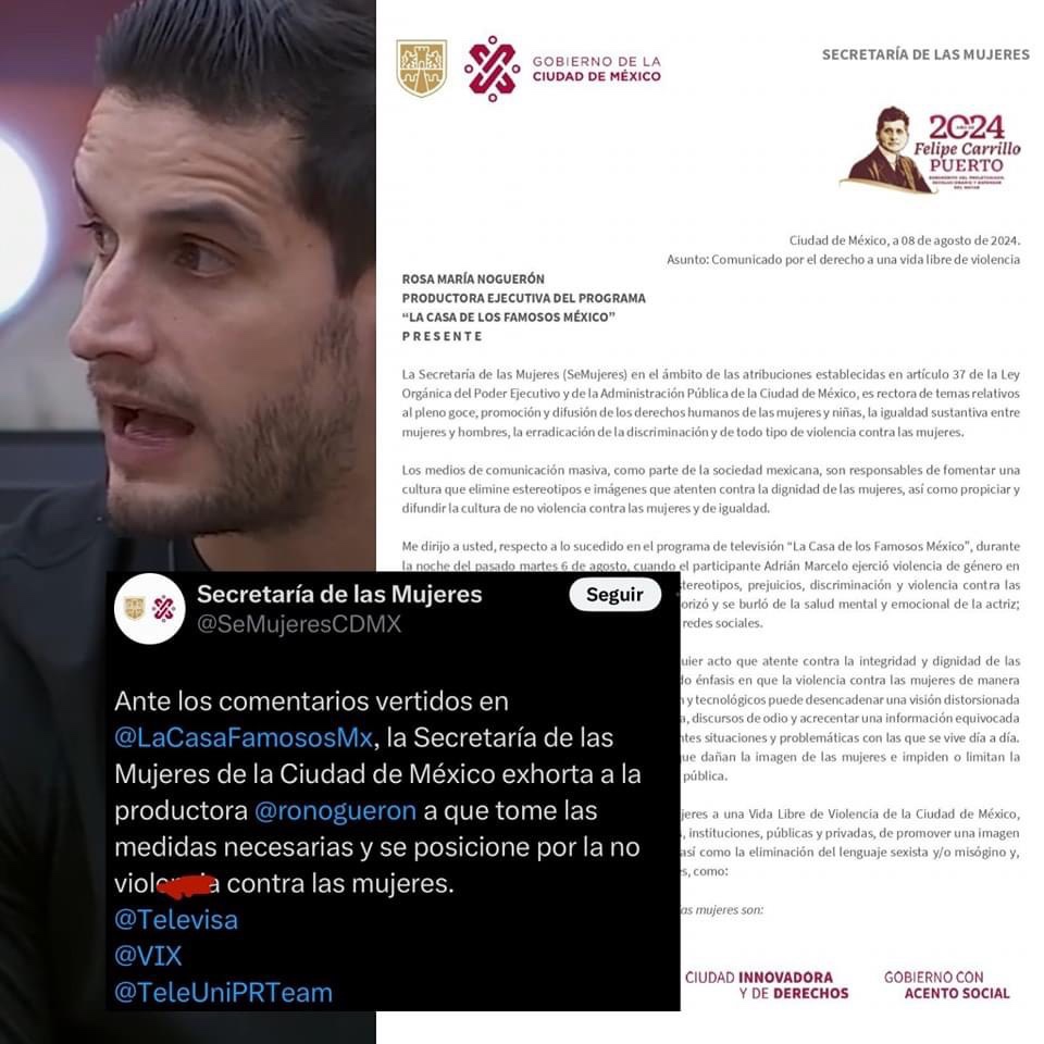 El jueves 8 de agosto, la SeMujeres emitió un comunicado a través de su cuenta en X, en el que condenó las acciones del comediante Adrián Marcelo, en donde señaló que sus comentarios hacia Gala Montes perpetuaron estereotipos y fomentaron la violencia de género. Además, se enfatizó la responsabilidad de los medios de comunicación en la eliminación de estereotipos y la promoción de una cultura de no violencia.