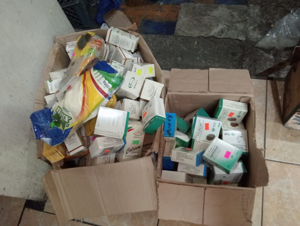 Todos los medicamentos caducos, así como material de curación y medicamentos “Propiedad del Sector Salud”, fueron asegurados por el personal de la Coeprist, debidamente etiquetados y se notificó a la Contraloría Interna del OPD Salud de Tlaxcala para realizar la trazabilidad de origen del medicamento o insumos asegurados.