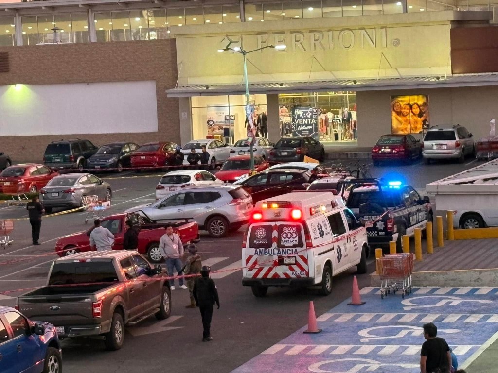 A bordo de una motocicleta negra dos sujetos atacaron a balazos a un hombre que se encontraba en su camioneta al interior del centro comercial “Plaza Apizaco”.